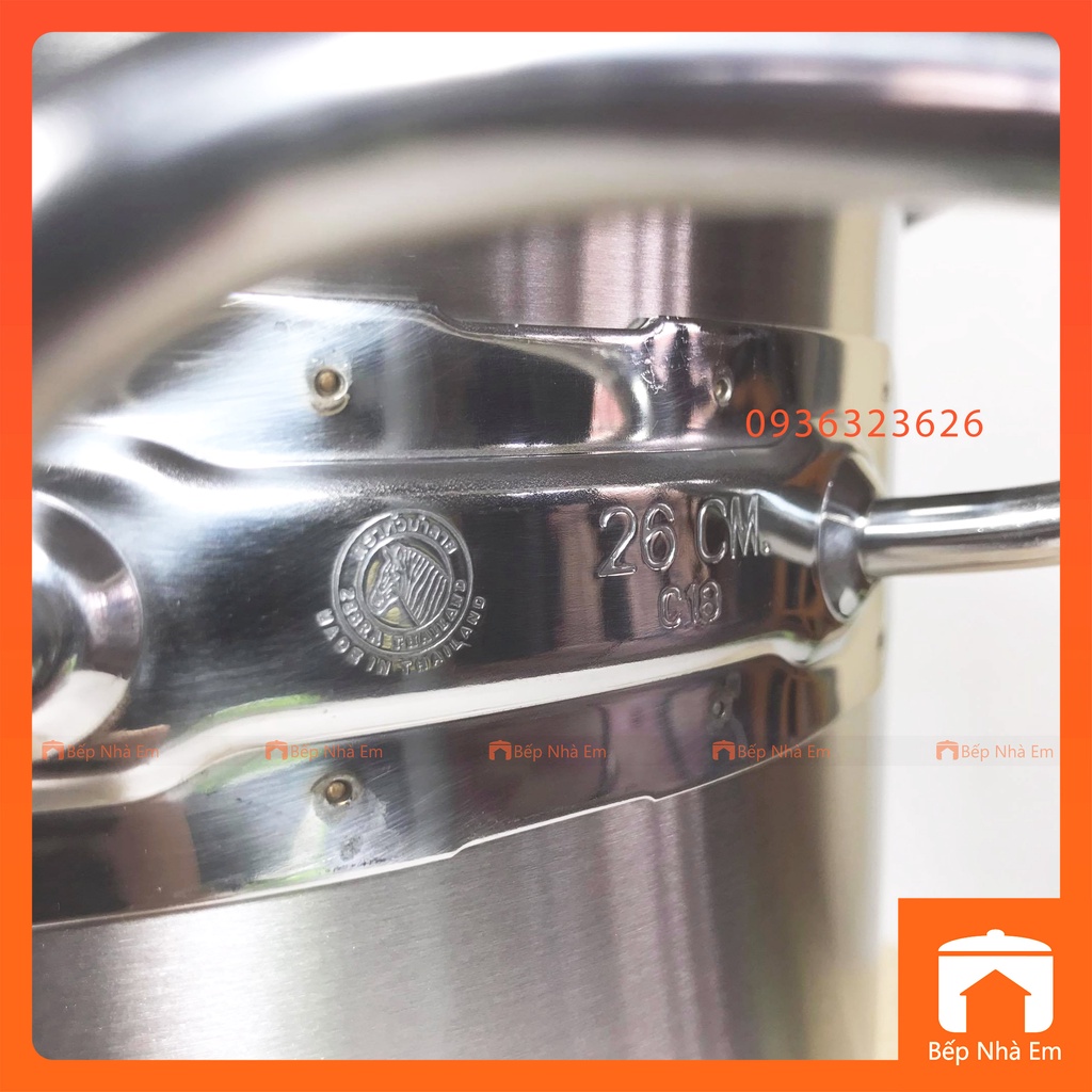 Đáy nồi siêu bền, giúp lan tỏa nhiệt nhanh và đều, giữ ấm thực phẩm lâu hơn sau khi nấu ăn Nồi có kiểu dáng đẹp, hiện đại. Toàn bộ thân nồi và tay cầm đều làm bằng inox cao cấp, mang đến cảm giác sạch sẽ, sang trọng, làm sáng bóng gian bếp nhà bàn.