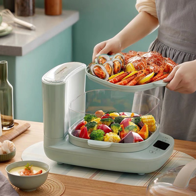 🔥Dung tích 6L, thiết kế hai tầng, tăng diện tích chứa tối đa, hấp được nhiều loại thực phẩm một lúc