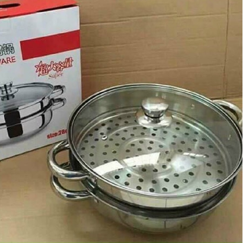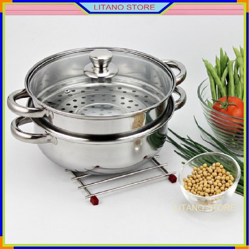 Nhà cửa & Đời sống > Dụng cụ nhà bếp > Nồi || Nồi Hấp 2 Tầng Chất Liệu Inox Đường Kính 28cm Có Năp Đậy Bằng Kính Chịu Nhiệt An Toàn, Sạch SẽCòn hàng
