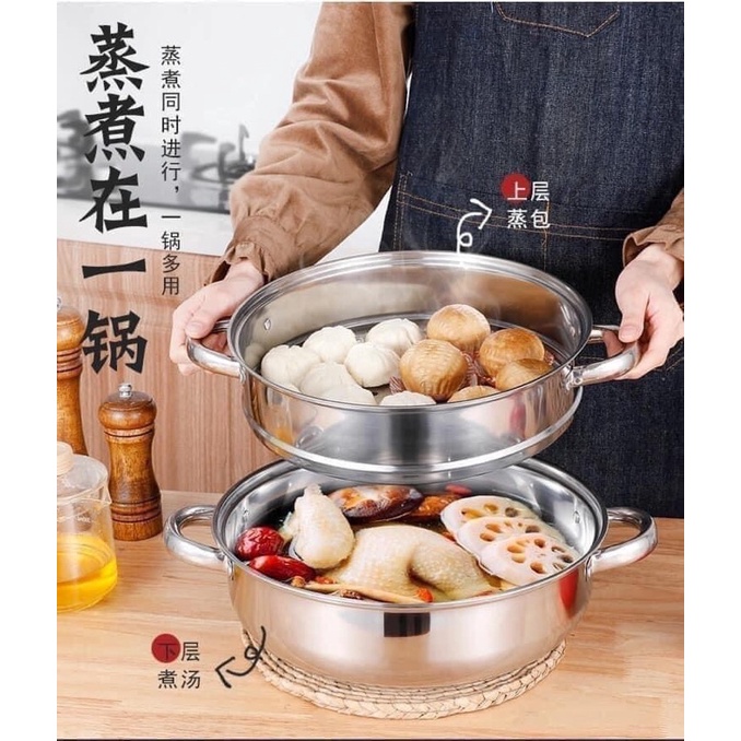 Nhà cửa & Đời sống > Dụng cụ nhà bếp > Nồi || Nồi hấp 2 tầng đa năng đường kính 28cm, Bộ xửng hấp inox 28cm đa năng 2 tầng cao cấp nắp kínhCòn hàng