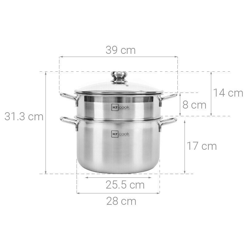 Nồi hấp 2 tầng H.T Cook inox 430 nắp kính cường lực size 28cm