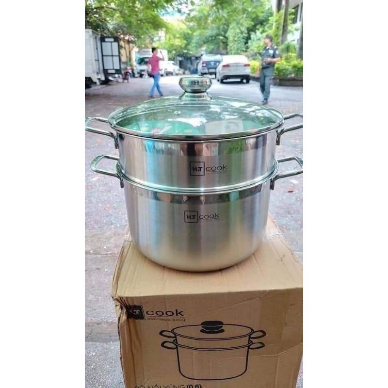 Nhà cửa & Đời sống > Dụng cụ nhà bếp > Nồi || Nồi hấp 2 tầng H.T Cook inox 430 nắp kính cường lực size 28cmCòn hàng