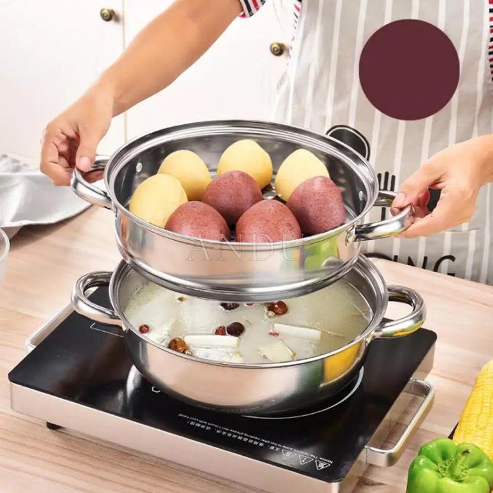 THÔNG TIN SẢN PHẨM: - Nồi nước lẩu đươc thiết kế 2 tầng tách biệt - Nồi hấp đa năng, tiện lợi - Nắp kim loại vừa khít - Làm nóng cực nhanh. - Kích thước: đường kính 28 cm, ch...- Giao hàng toàn quốc