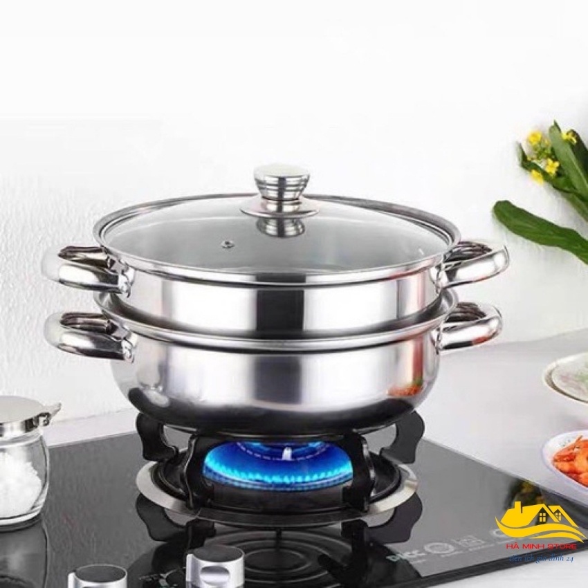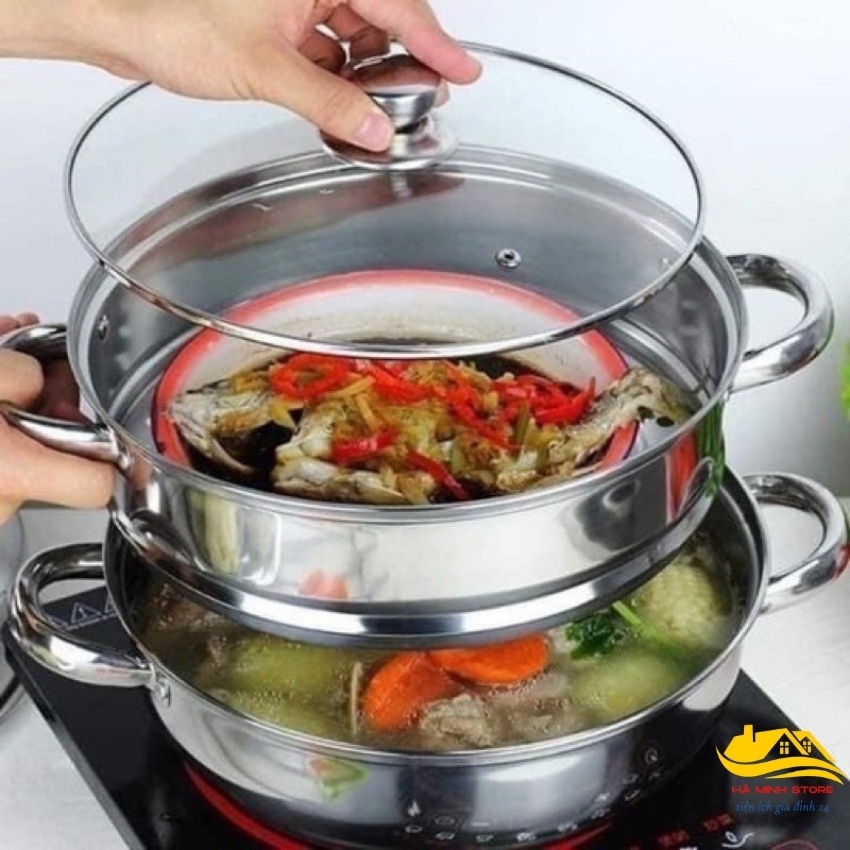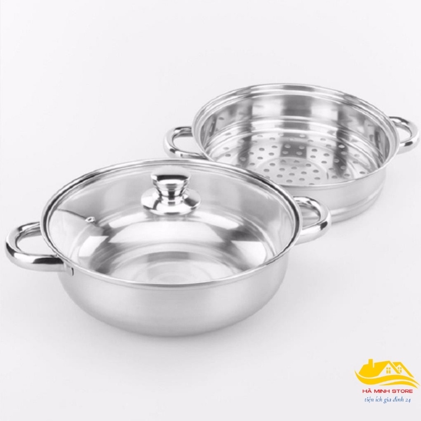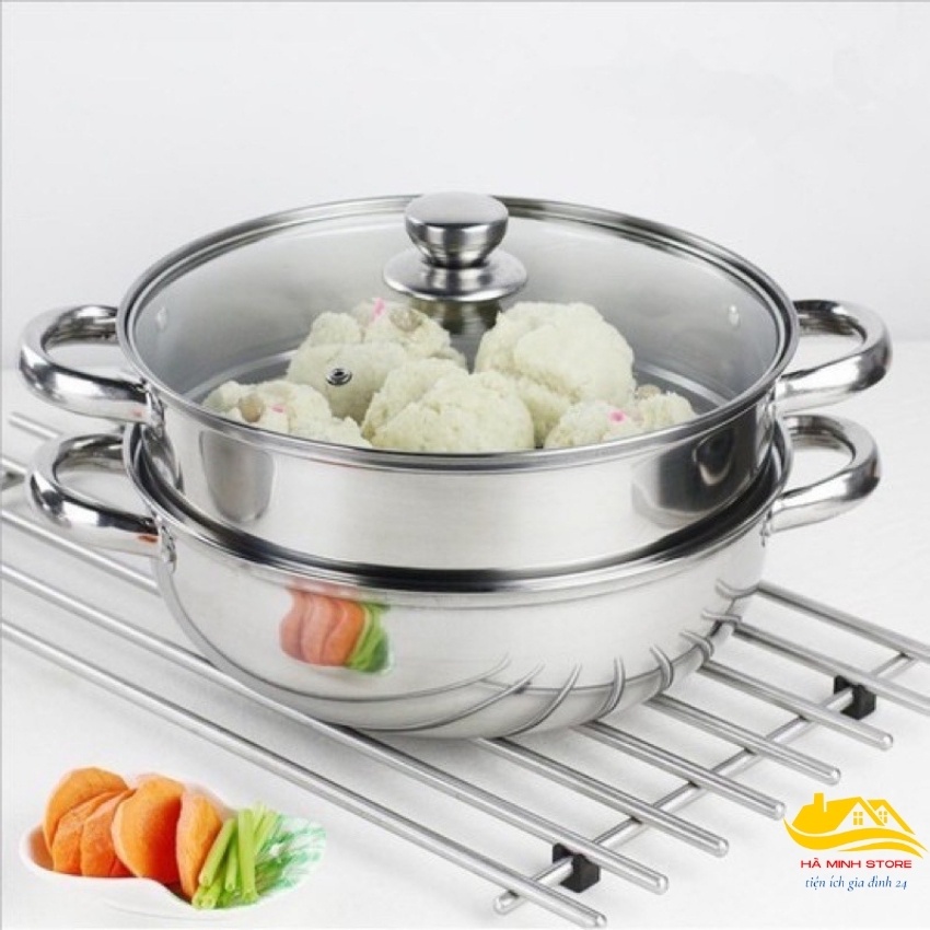 Nồi hấp 2 tầng inox đường kính 28cm, nồi hấp bánh bao, Xửng hấp 2 tầng đa năng phù hợp với các loại bếp Hà Minh Store