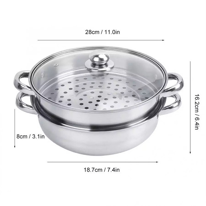 Nồi hấp 2 tầng inox - nồi hấp cách thủy siêu nhanh , bộ nồi inox vung kính kèm xửng hấp"MÔ TẢ SẢN PHẨM