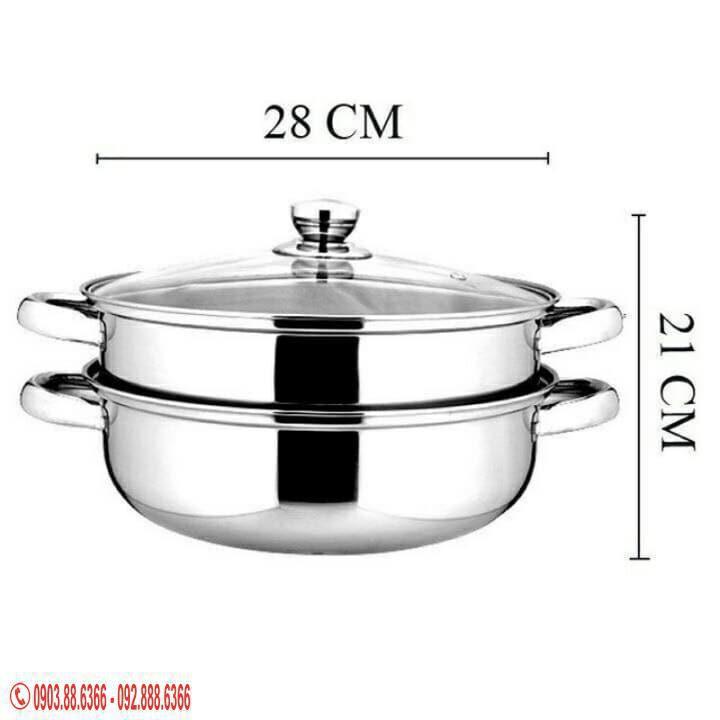 Nồi hấp 2 tầng inox - nồi hấp cách thủy siêu nhanh , bộ nồi inox vung kính kèm xửng hấp