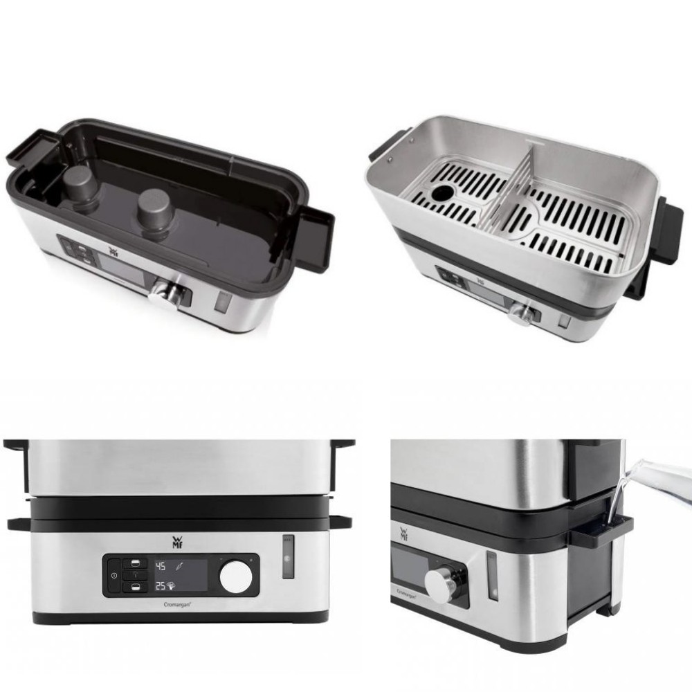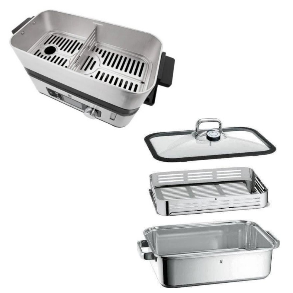 - Đây là mẫu nồi hấp cao cấp của WMF mà khay hấp được làm từ thép Cromagan, không phải bằng nhựa như đa phần các mẫu nồi hấp khác.