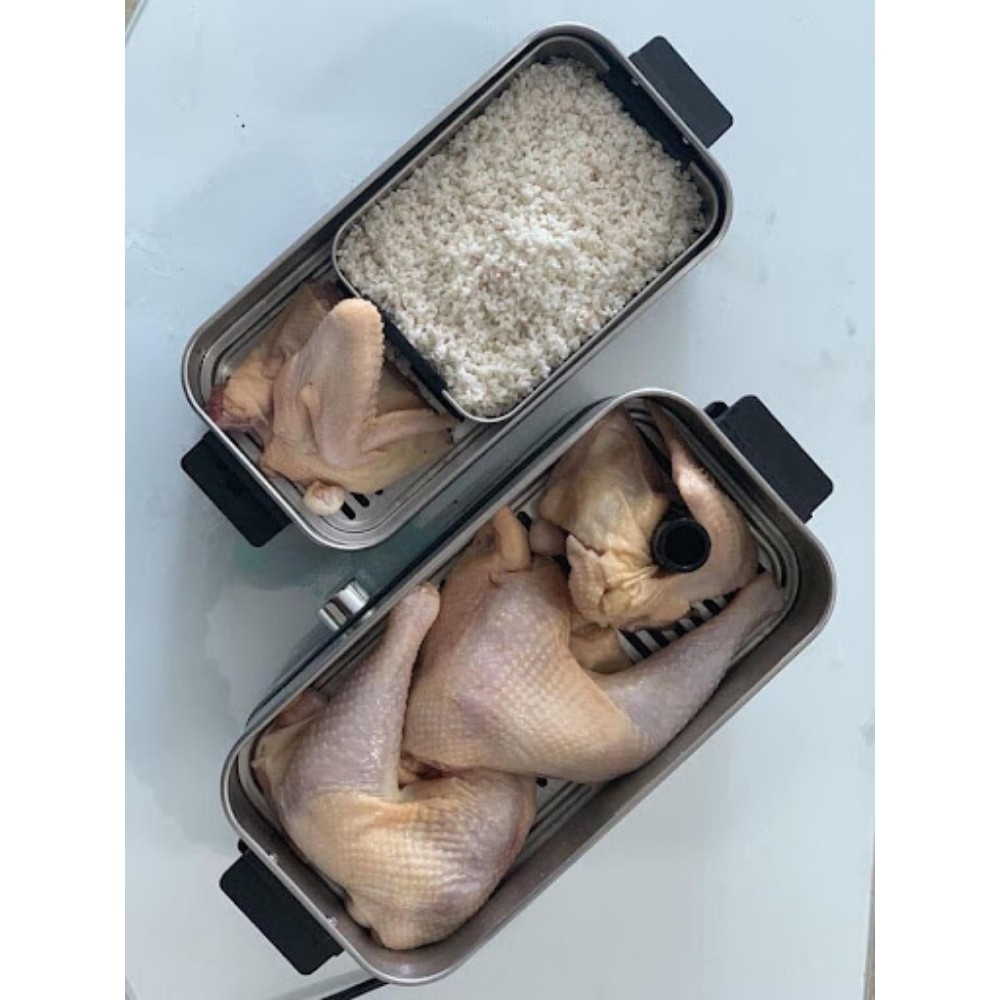 - Đặc biệt nồi được làm bằng chất liệu thép không gỉ 18/10 an toàn, bền chắc (khác với 90% nồi hấp điện nhiều tầng hiện nay các khay đều làm bằng nhựa).