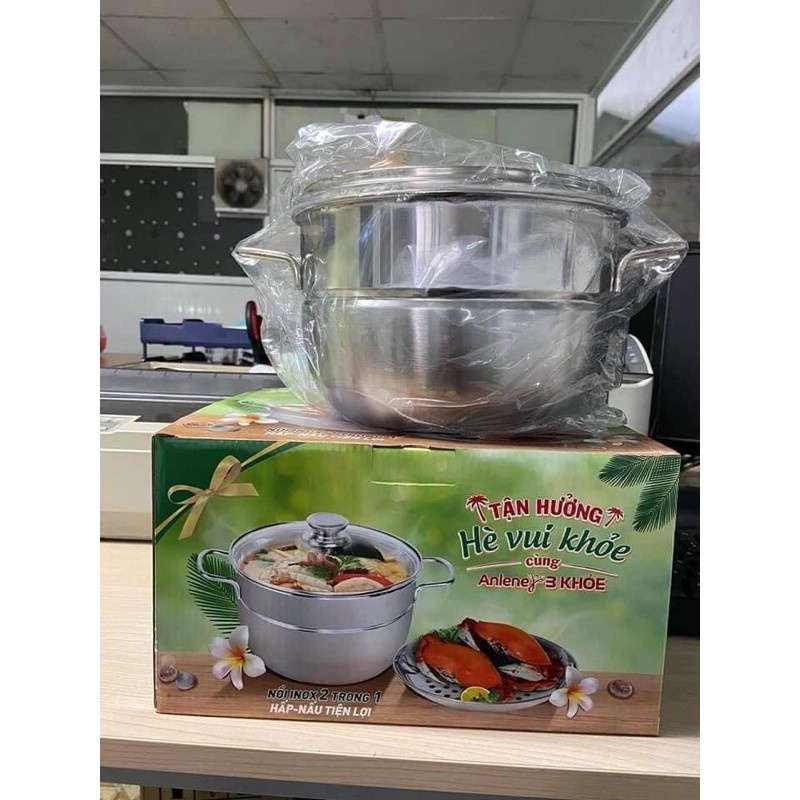 Thiết Bị Điện Gia Dụng > Đồ gia dụng nhà bếp > Nồi nấu đa năng || Nồi Hấp 2 Trong 1 INOX nắp kiếng 22cm,Hàng khuyến mãi của nhãn sữa Anlene.Còn hàng