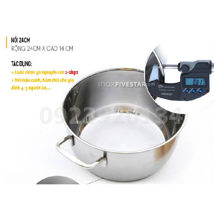 Bộ nồi xửng hấp 24cm nắp inox Fivestar cao cấp được chế tạo từ inox nhập khẩu Hàn Quốc, có độ sáng bóng và độ bền cao. Bề dày của nồi đạt tiêu chuẩn quốc tế là 8cm...Hotline tư vấn CSKH: 0923920134