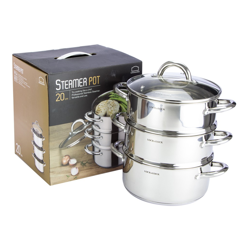 Nhà cửa & Đời sống > Dụng cụ nhà bếp > Nồi || [Mã LIFELOCK253 giảm 12% đơn 250K] Nồi hấp 3 tầng bằng Innox Lock&Lock 20cm -LLH1202Còn hàng