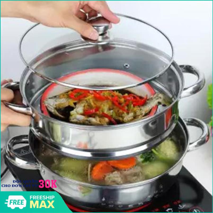 Thiết Bị Điện Gia Dụng > Đồ gia dụng nhà bếp > Nồi nấu đa năng || Nồi hấp 3 tầng bằng inox 304 hàng cao cấp rộng 28cm có thể dùng trên bếp từ, hồng ngoiaj và bếp ga có nắp vung đậy kínCòn hàng