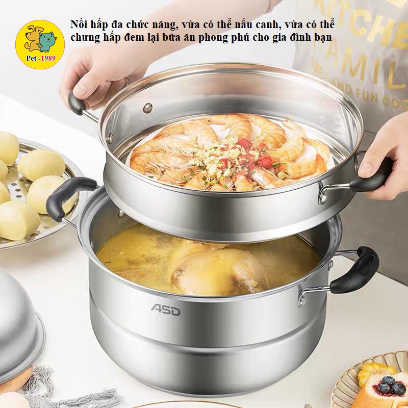 Nồi Hấp 3 tầng inox cao cấp ADS 24 cm - 28 cm Pet-1989