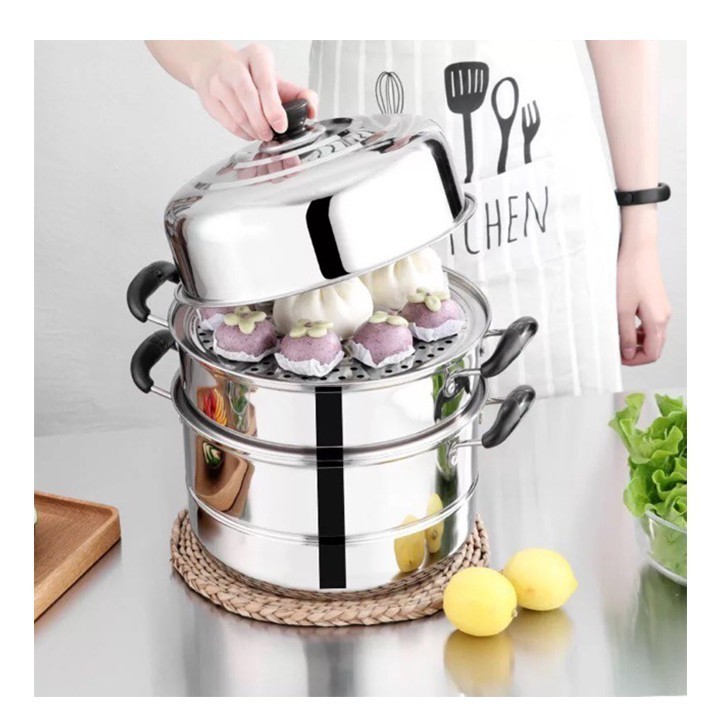 ✅ Nồi 3 tầng bằng chất liệu Inox, đường kính lòng nồi 28 cm .