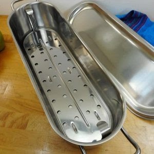 - Kích thước khay hấp dài 45cm có thể hấp thoải mái được nguyên 1 con cá, ngoài ra bạn có thể dùng nồi để hấp mực, ngao sò, rau củ .. rất tiện lợi.
