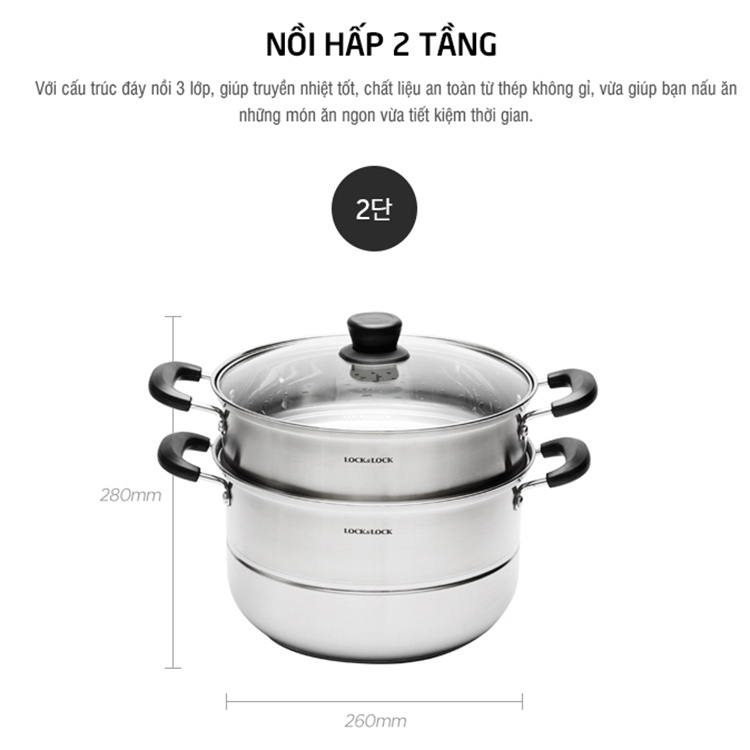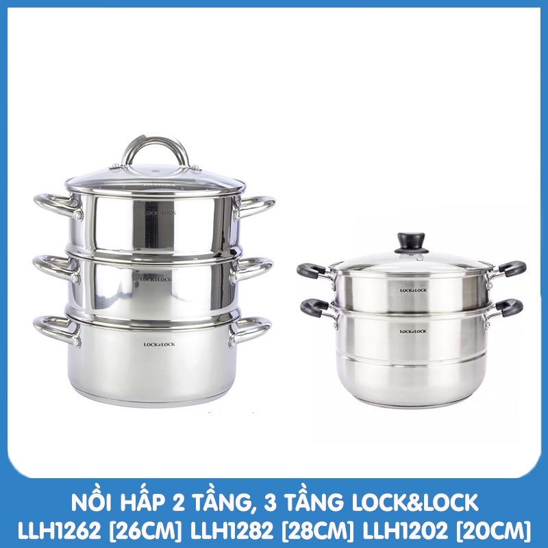 Nồi hấp đa năng 2 tầng 3 tầng Inox Lock&Lock 18CM 20CM 26CM 28CM LLH1262 LLH1282 LLH1182 LLH1202