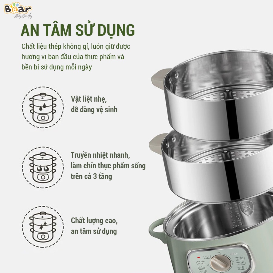 Nồi Hấp Điện 3 Tầng Bear 10L Hấp Đa Năng, Hấp Bánh Bao, Hấp Xôi, Hấp Đồ Ăn Dặm Cho Bé DZG-D80G5