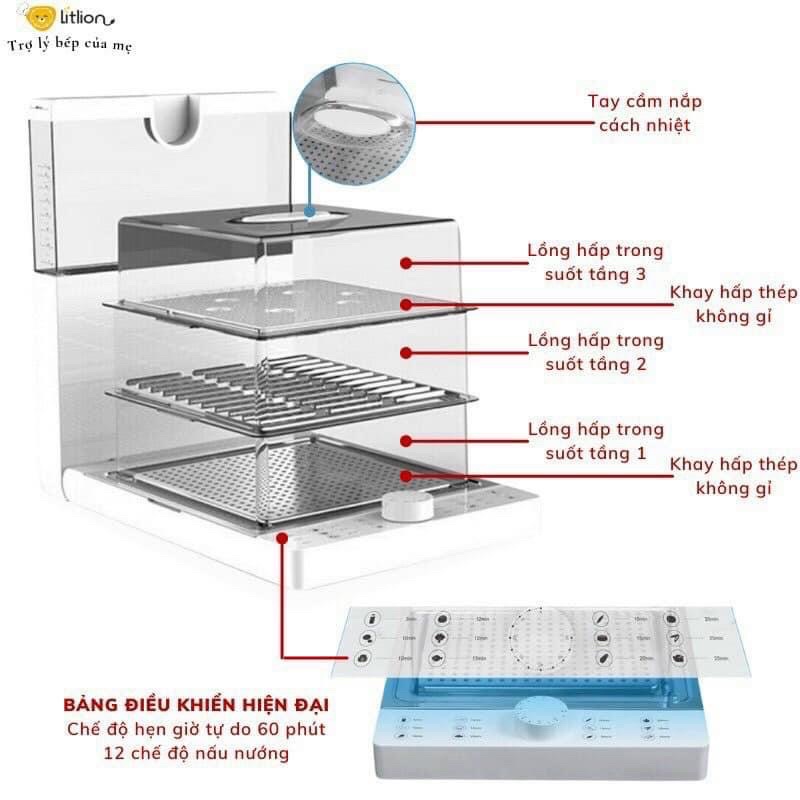 Nồi hấp điện 3 tầng YUNIKLY 10,8 lít xửng hấp inox gập đôi đa năng tiện lợi.HÀNG CÓ SẴN/BH 1 NĂM
