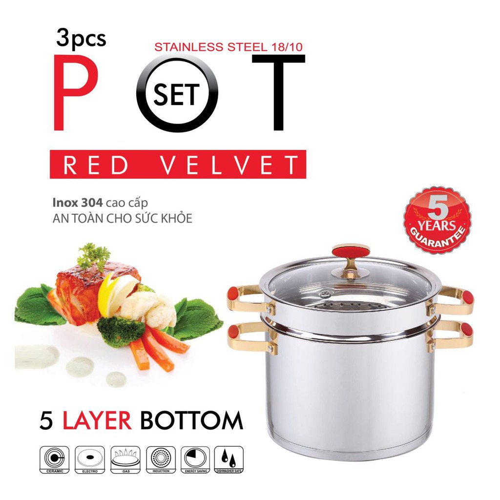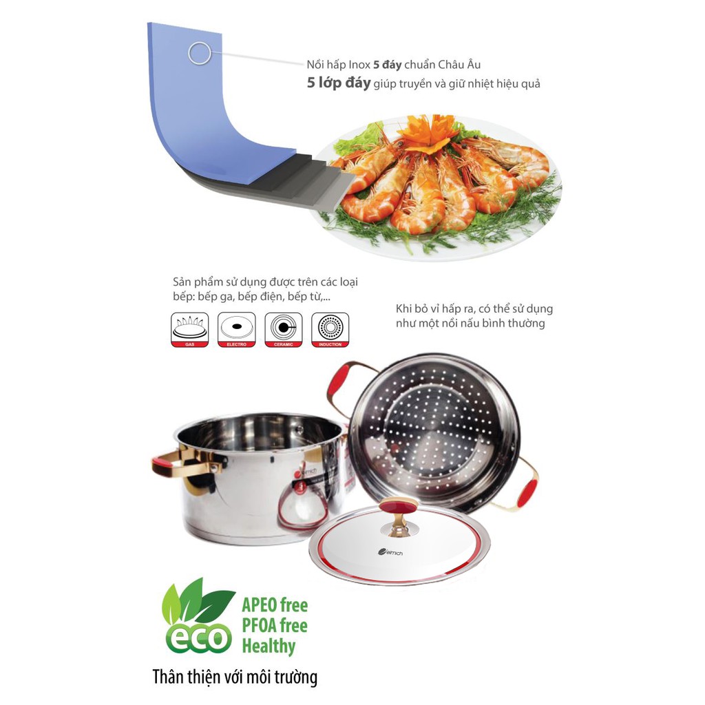 Giới thiệu sản phẩm Nồi hấp Elmich Inox 304 Red Velvet 28cm EL0979Đặc điểm nổi bật: