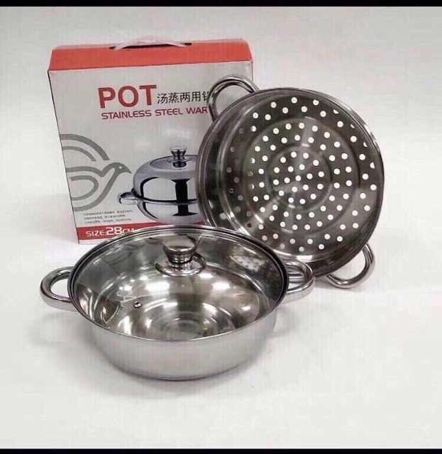 👉Được thiết kế tiện dụng gồm 1 nồi và 1 xửng hấp, bạn có thể dùng để nấu canh, nấu lẩu, hấp bánh hay hấp gà...Bộ nồi có vẻ ngoài sáng bóng trông rất đẹp mắt, bề mặt cứng, sáng bóng, dễ chùi rửa, hạn chế móp méo và trầy xước
