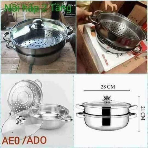 Nồi hấp inox 2 tầng size 28 cmNồi hấp inox 2 tầng cao cấp có thiết kế chắc chắn, không gỉ sét, dùng được trên các loại bếp gas, bếp điện, bếp hồng ngoại thích hợp cho việc nấu các món như luộc, ninh, hầm..