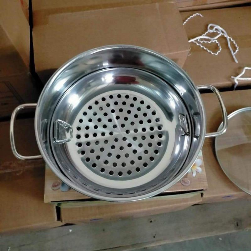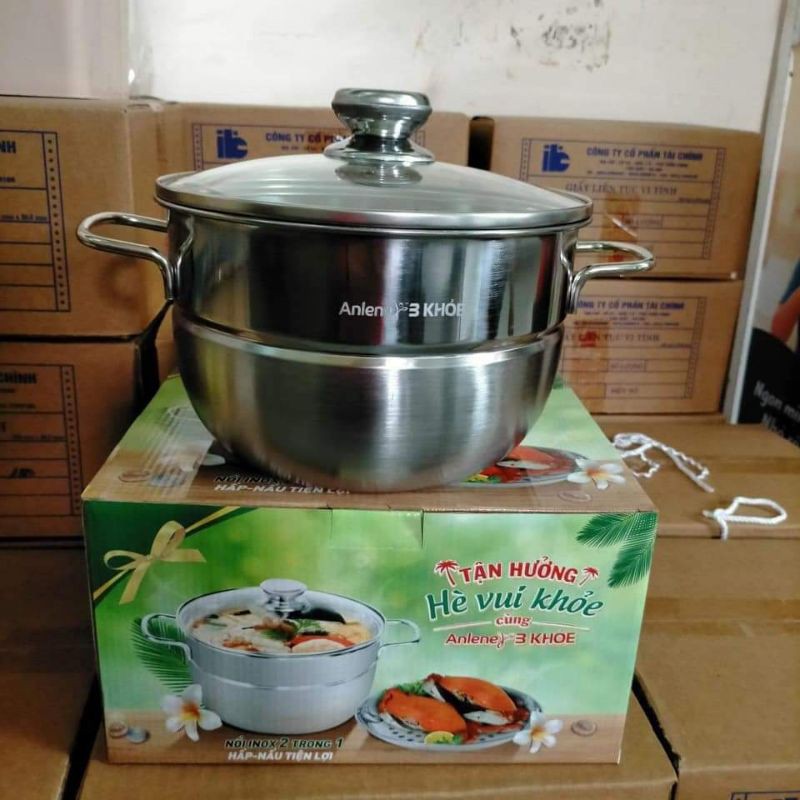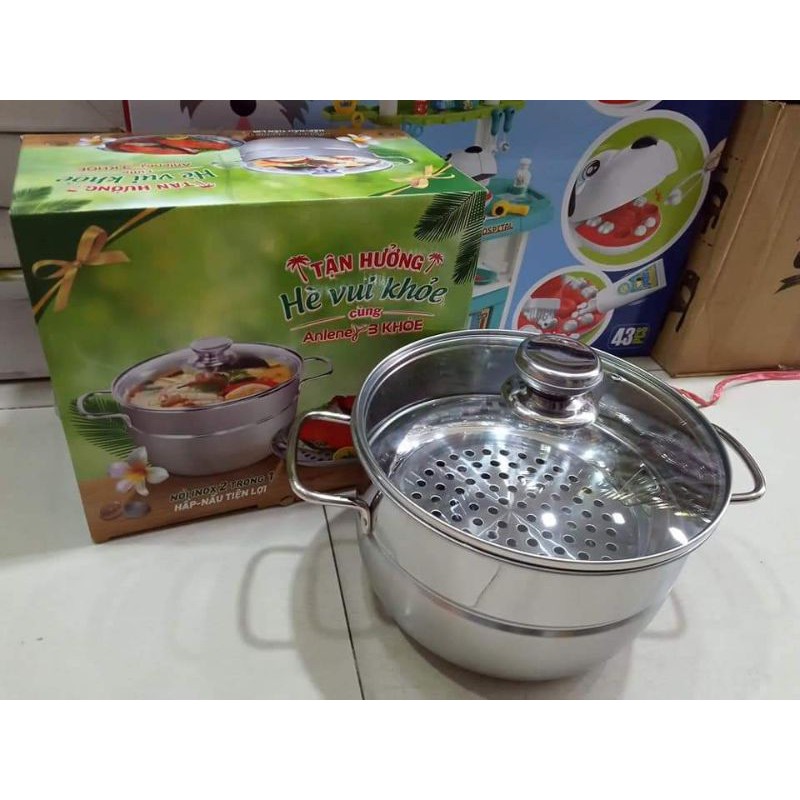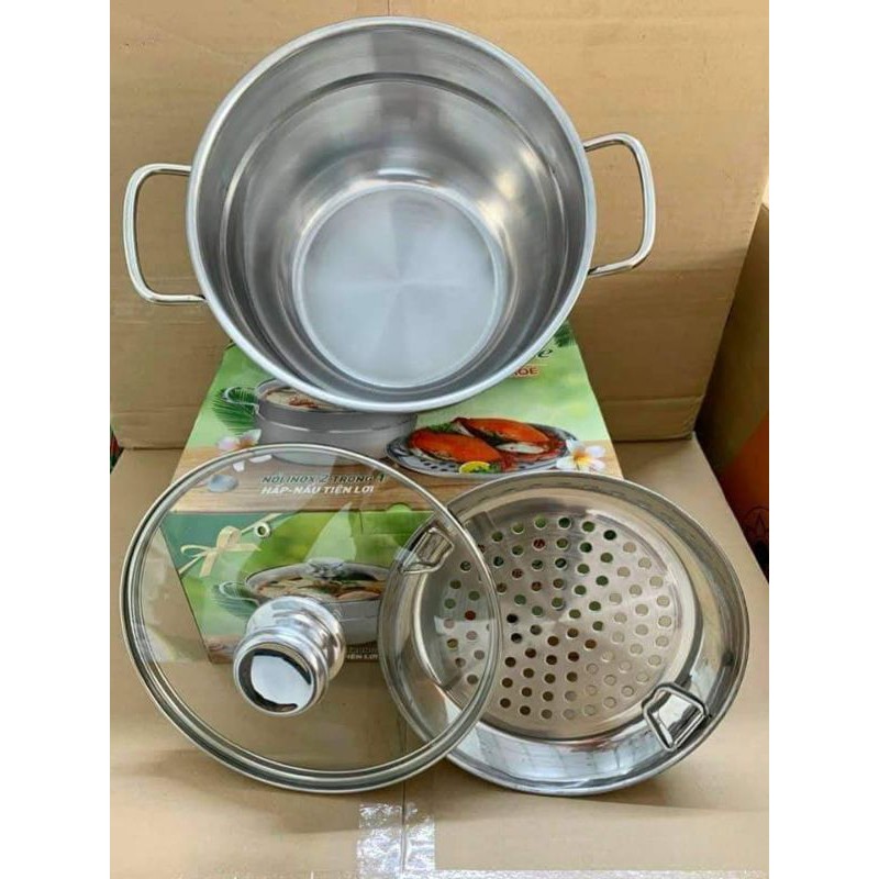 Nhà cửa & Đời sống > Dụng cụ nhà bếp > Nồi || Nồi hấp Inox 2tầng nắp kiếng 22cmCòn hàng
