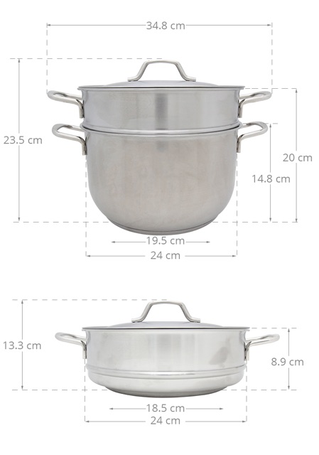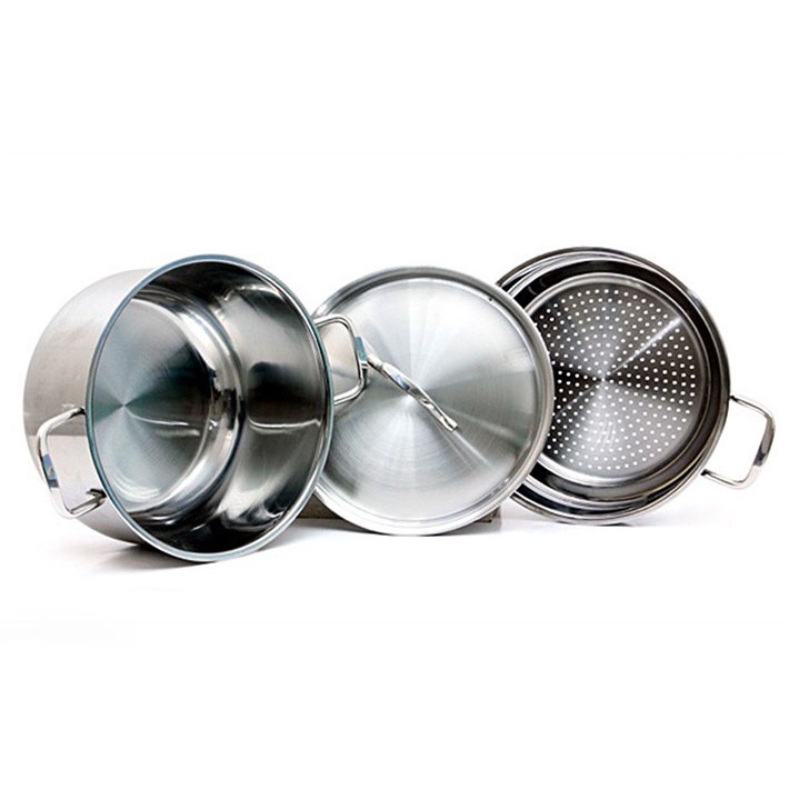 - Bộ gồm: 1 nồi, 1 xửng, và 1 nắp inox