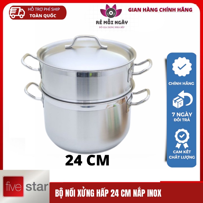 Bộ nồi hấp Inox 3 đáy Fivestar đường kính 24cm dùng bếp từ, bảo hành 5 nămXuất xứ: Việt Nam