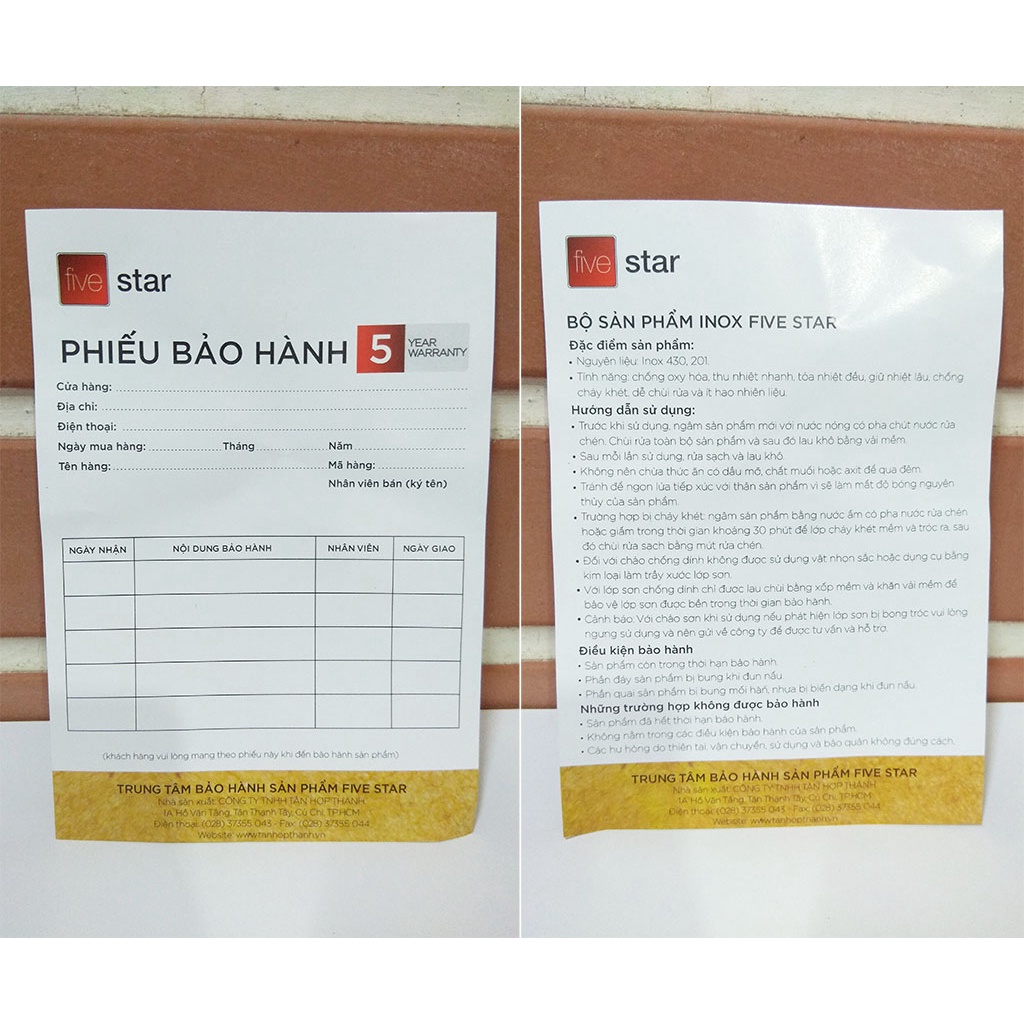 - Thương hiệu : Fivestar - nhà sản xuất Tân Hợp Thành