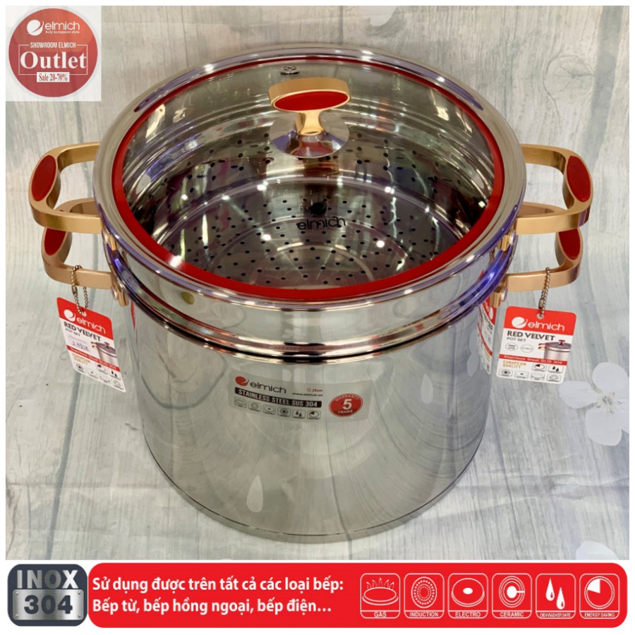Nhà cửa & Đời sống > Dụng cụ nhà bếp > Nồi || Nồi Hấp Inox 304 5 Lớp Đáy Từ ELMICH Redvelvet EL5585 24cm/ EL0979 28cmCòn hàng