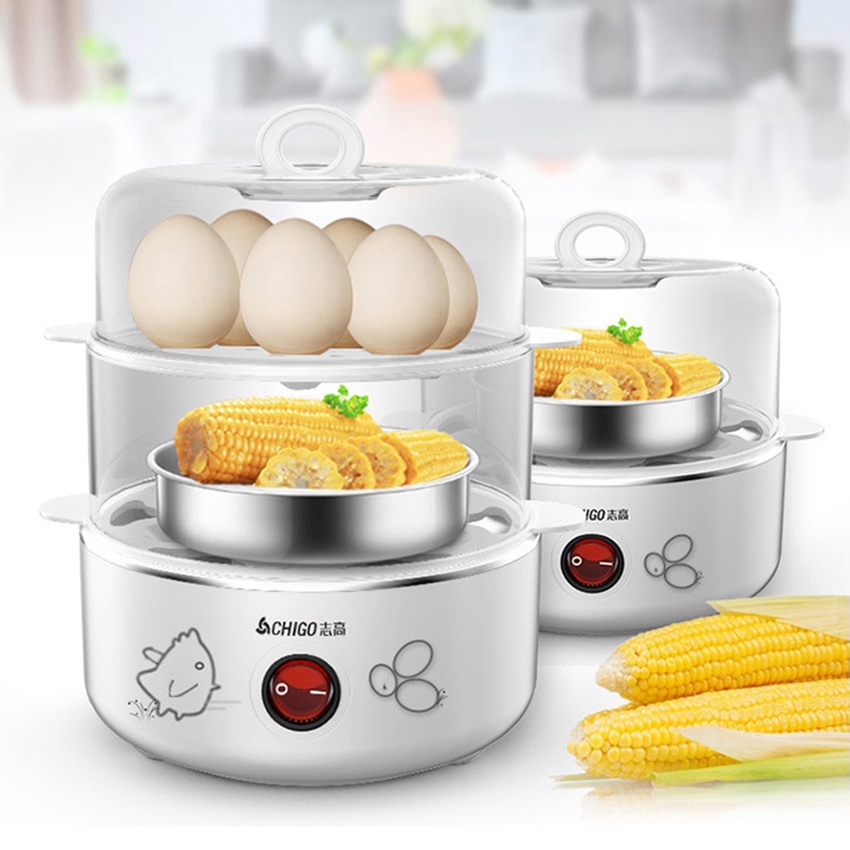 Nồi Hấp Mini 2 Ngăn ChiGo ZDQ210, Nồi Hấp Thức Ăn Điện Đa Chức Năng 2 Lớp Chống Cháy Khi Hết Nước Làm Nóng Đều 360 Độ