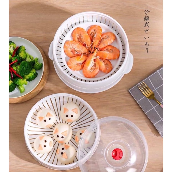 ♨♨♨Nồi Hấp Thức Ăn Cao Cấp Dùng Cho Lò Vi Sóng Nồi Hấp Nhựa Chịu Nhiệt Nồi Hấp 3 Chi Tiết💦💦💦