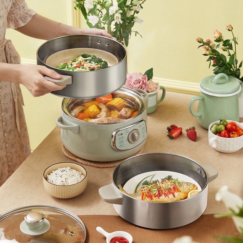 Nồi hấp,nồi lẩu điện mini đa năng 3 tầng Bear DZG-D80G5 10L, Bếp nấu lẩu, nấu canh, nhúng rau, hấp bánh bao, BH 18 tháng