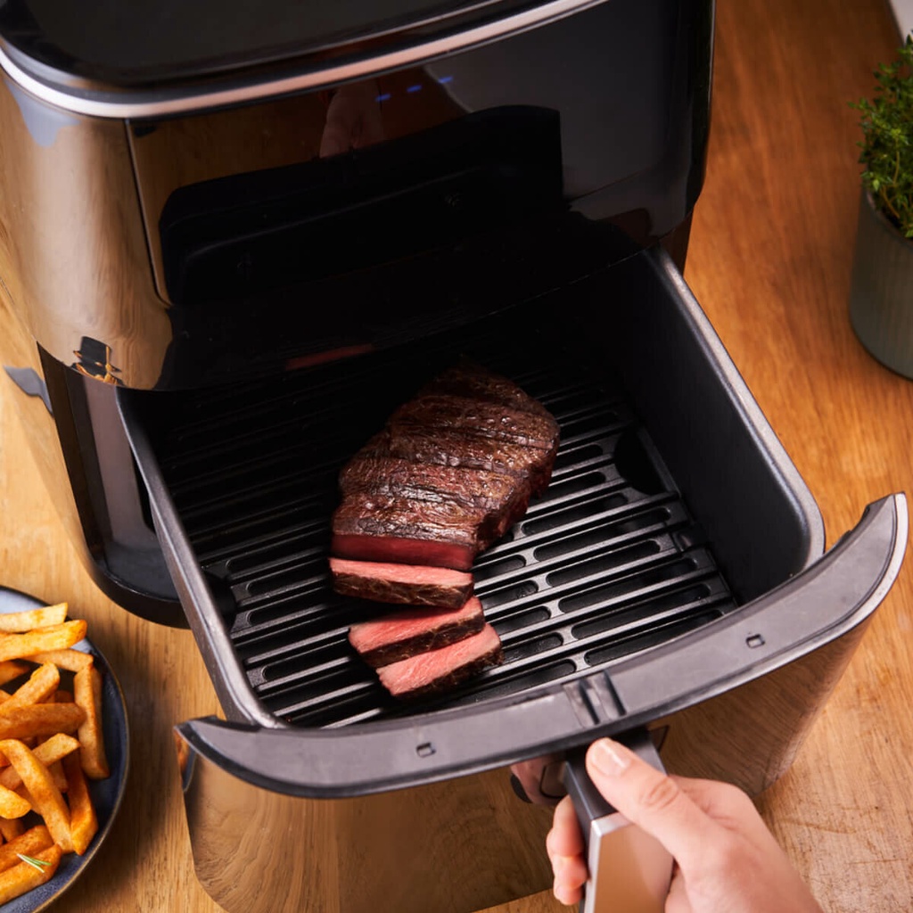 - 7 CHƯƠNG TRÌNH TỰ ĐỘNG: 5 chương trình cài đặt sẵn (Khoai tây chiên, Nuggets, Gà, Rau củ, Món tráng miệng) và 2 chương trình "nồi chiên không khí + hơi nước" kết hợp thông minh (Cá, Thịt quay), mang đến khả năng công thức vô tận