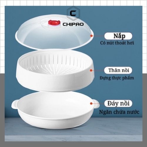 Nồi Hấp Thức Ăn Cao Cấp Chịu Nhiệt 3 Chi Tiết Dùng Cho Lò Vi Sóng CHIPAO STOREĐẶC ĐIỂM NỔI BẬT