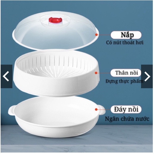 Nồi Hấp Thức Ăn Cao Cấp Dùng Cho Lò Vi Sóng Nồi Hấp Chịu Nhiệt Nồi Hấp 3 Chi Tiết