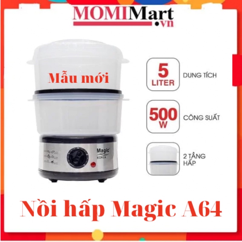 Máy hấp thực phẩm Magic A64 đa năng 02 tầng Magic Korea A64 sẽ giúp bạn hâm, hấp thực phẩm một cách nhanh chóng và giữ được trọn vẹn chất dinh dưỡng khi nấu. Với dung tích lớn lên đến 2 tầng riêng biệt cho bạn thực hiện nhiều món ăn cùng lúc. Đây là một sản phẩm không thể thiếu được của những người nội trợ thông minh, là một trợ thủ đắc lực giúp bạn có nhiều thời gian hơn dành cho công việc bếp núc.ĐẶC ĐIỂM NỔI BẬT của Máy hấp thực phẩm Magic A64