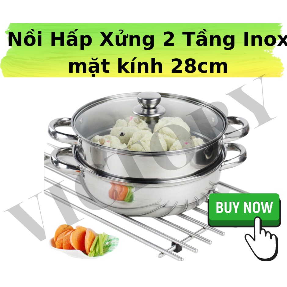 NỒI HẤP XỬNG 2 TẦNG INOX MẶT KÍNH 28CM