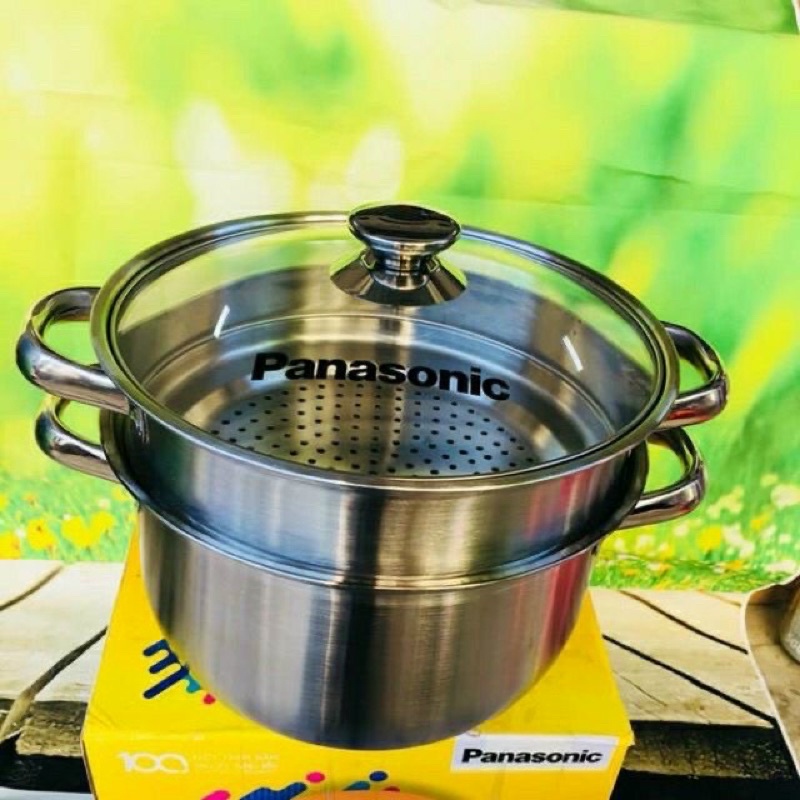 BỘ NỒI INOX XỬNG HẤP NẮP KÍNH PANASONIC size 24cm📌Được chế tạo từ inox 430 nhập khẩu Hàn Quốc, có độ sáng bóng và độ bền cao.