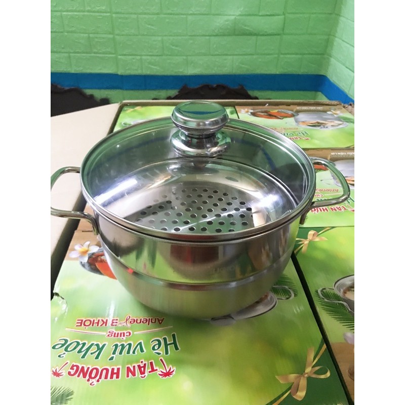 Nồi Inox Hấp Nấu Nắp Kính 2in1 Cao Cấp 22cm