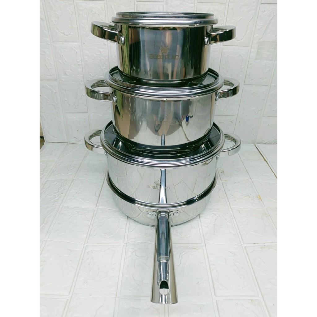 Nhà cửa & Đời sống > Dụng cụ nhà bếp > Nồi || Bộ nồi Inox 04 Món Đáy 05 Lớp Cao Cấp Nhập Khẩu Chính Hãng BOSS ELACCòn hàng
