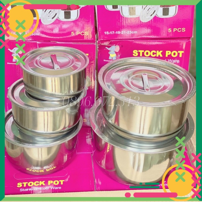 Bộ Nồi Inox 16cm, 18cm, 20cm, 22cm, 24cm (5 Nồi) Không Quai Sáng Bóng Dùng Được Cho Các Loại BếpTHÔNG TIN SẢN PHẨM BỘ NỒI INOX