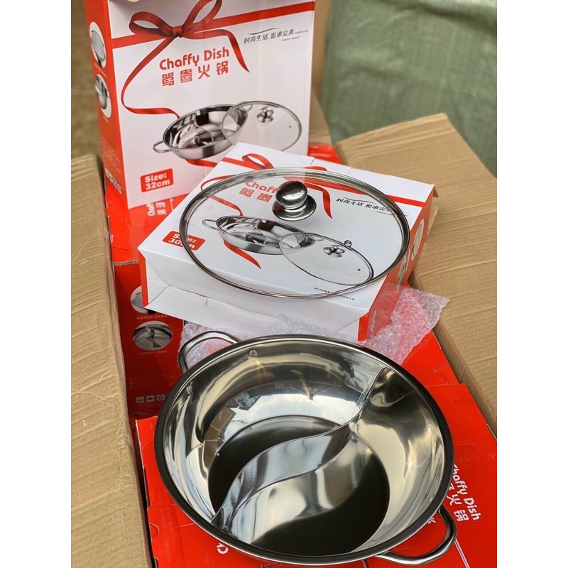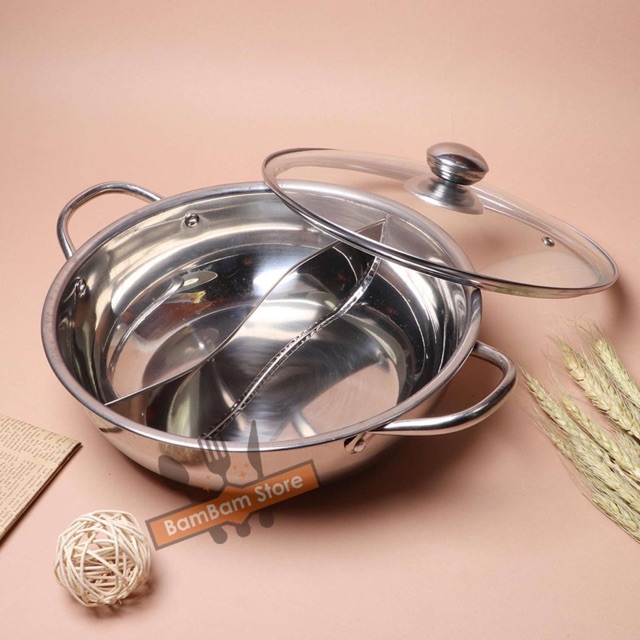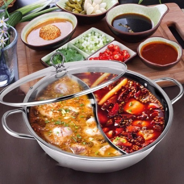 Nồi Inox 2 Ngăn Chuyên Dùng Ăn Lẩu Tiện Lợi size 32cm