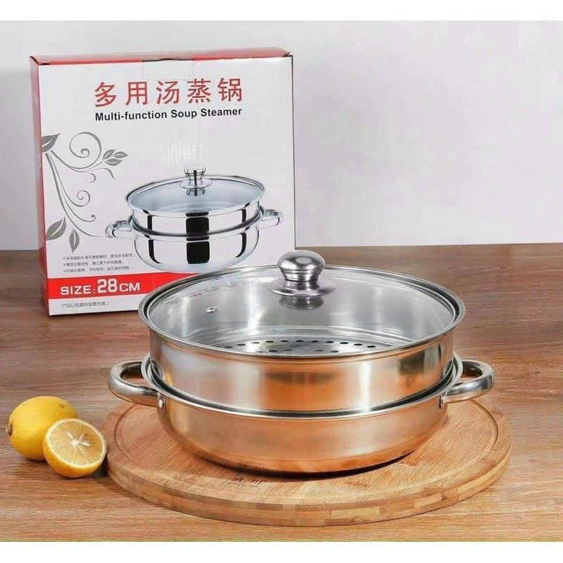 Nồi hấp 2 tầng bằng inox cao cấp đa năng được thiết kế tiện dụng gồm 1 nồi và 1 xửng hấp, bạn có thể dùng để nấu canh, nấu lẩu, hấp bánh hay hấp gà...