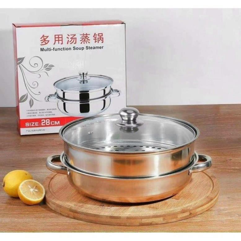 Nồi inox 2 tầng có giá hấp sz 28cm