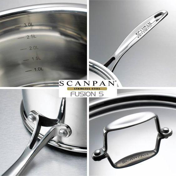 Kiểu dáng: Bộ nồi chảo inox Scanpan được thiết kế bên ngoài là inox bóng, kiểu dáng đẹp mắt giúp không gian bếp nhà bạn thật sang trọng, hiện đại và phong cách.Truyền nhiệt nhanh, kiểm soát nhiệt dễ dàng: Nồi chảo inox Scanpan Fusion5 được đúc liền thân đáy 5 lớp, giúp nồi chảo phân bổ nhiệt đều, dễ dàng kiểm soát nhiệt độ trong quá trình nấu và tiết kiệm năng lượng.