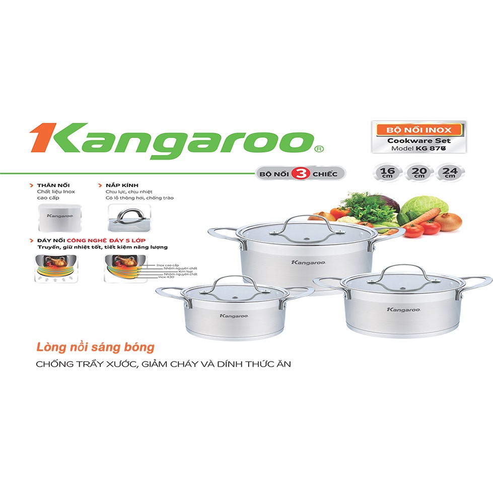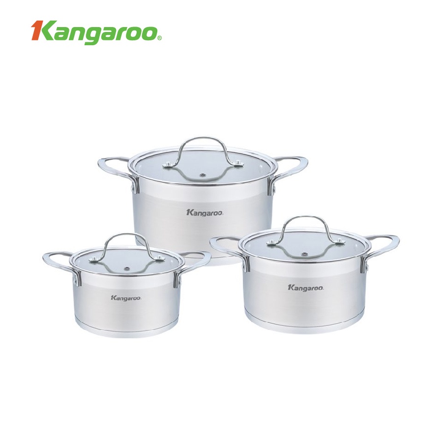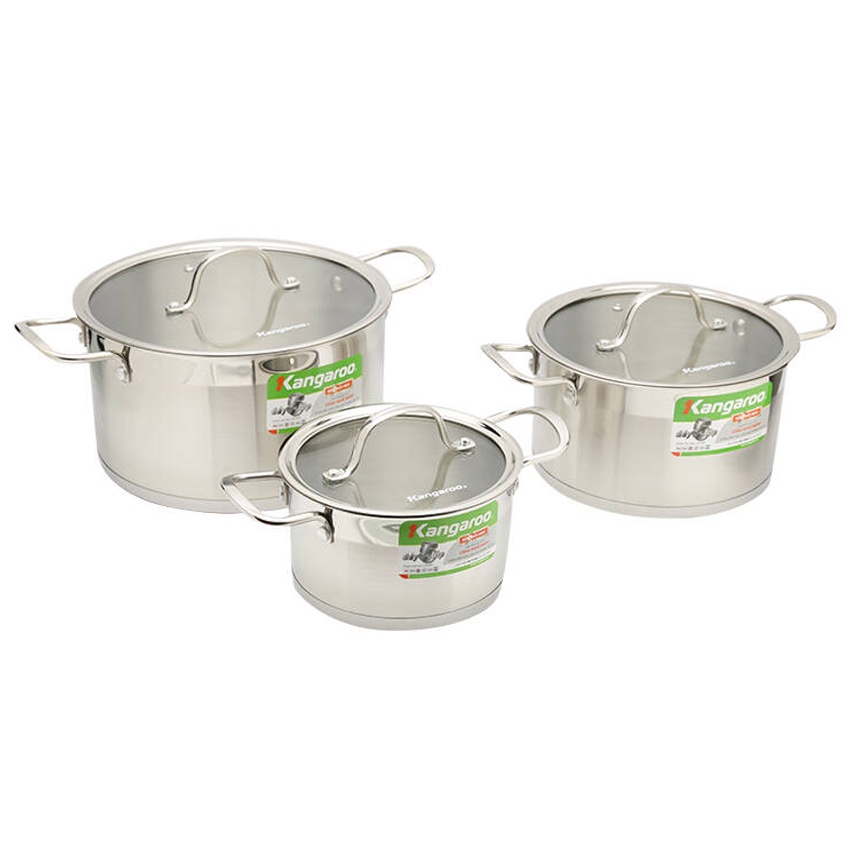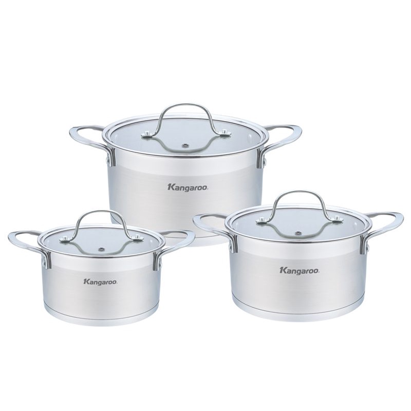 Nhà cửa & Đời sống > Dụng cụ nhà bếp > Nồi || Bộ nồi Inox 3 chiếc 16/20/24cm Kangaroo KG877 5 đáyCòn hàng