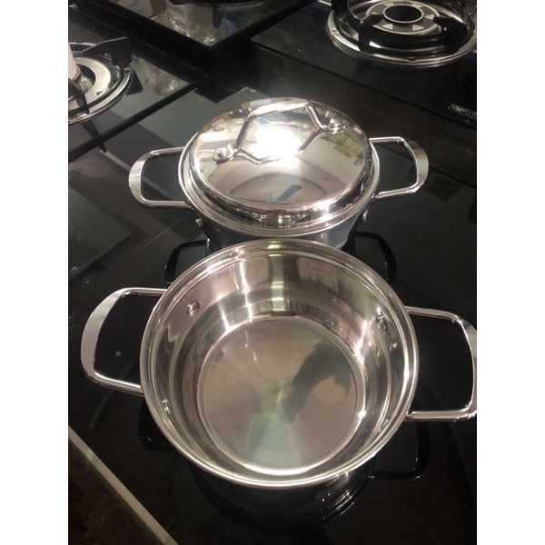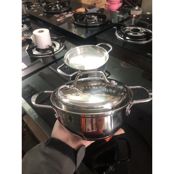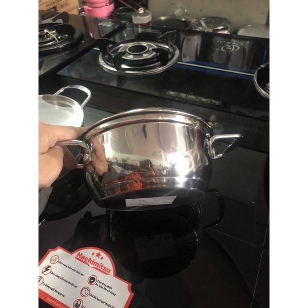 - Nồi 3 đáy rất dày, inox sáng bóng.