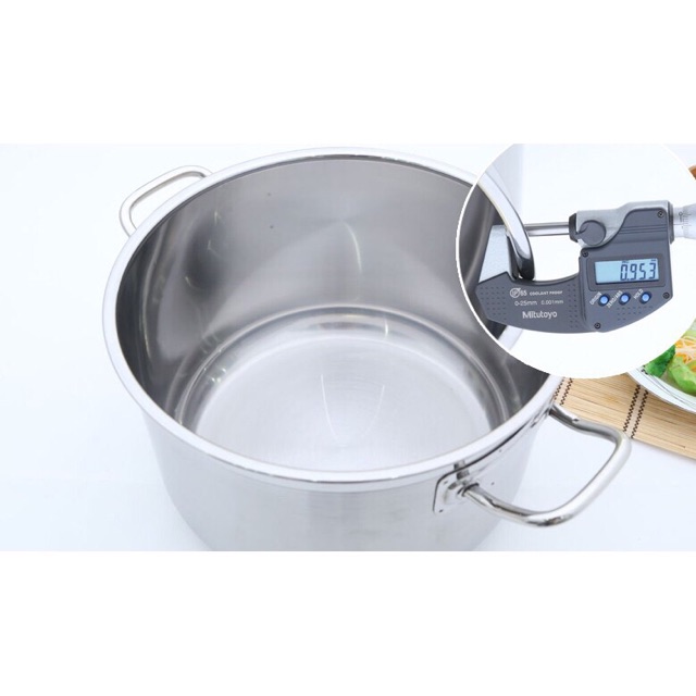 Nồi bằng inox 430 bền, sáng bóng, ít bị oxi hóa, an toàn cho sức khỏe người dùng, không tạo chất độc hại khi nấu ăn. Độ dày nồi gần 1 mm.