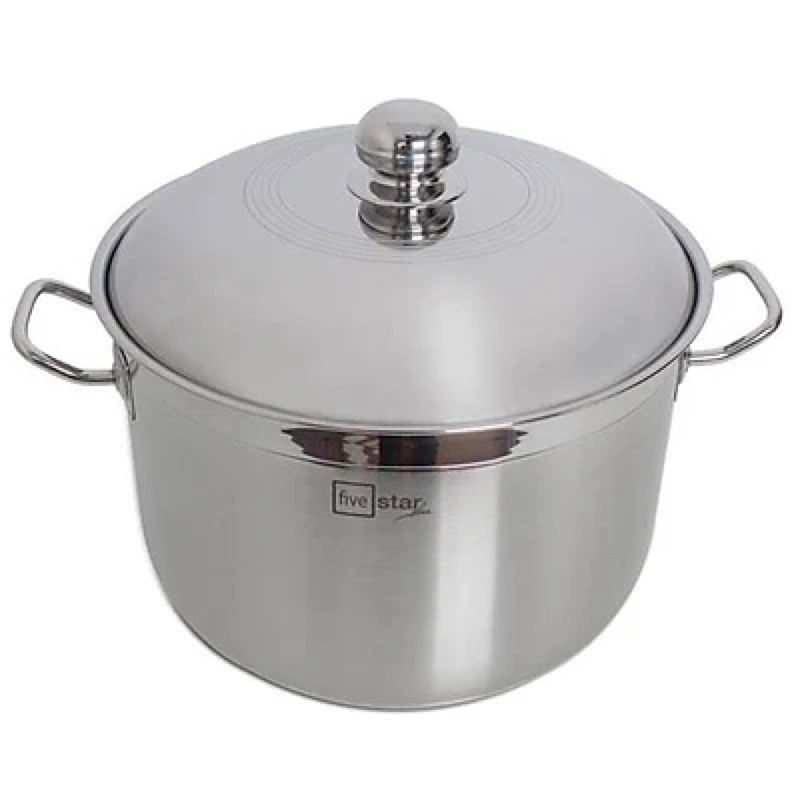 Bao bì không đẹpNồi inox 3 đáy chất liệu inox 430 sáng bóng, bền tốt, an toàn sức khỏe người dùng. Tay cầm dạng đũa chắc chắn dễ cầm nắm, nắp kín inox giữ nhiệt tốt. Nồi dùng được trên bếp gas, bếp hồng ngoại và bếp từ. Thương hiệu Five Star – Việt Nam, sản xuất tại Việt Nam.